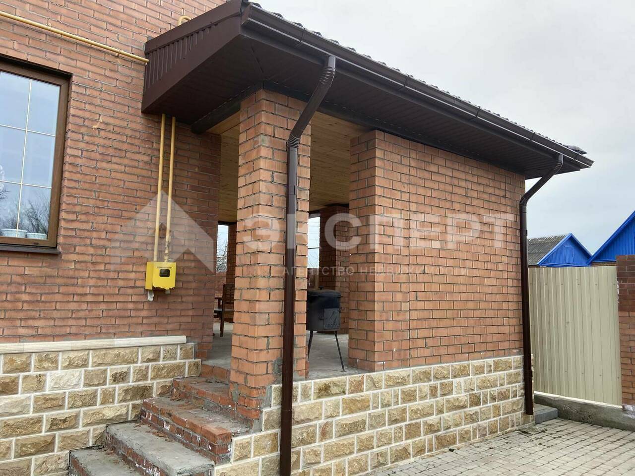 Двор выложен плиткой, сделан большой навес, детская площадка. В огороде много фруктовых деревьев, кусты малины.